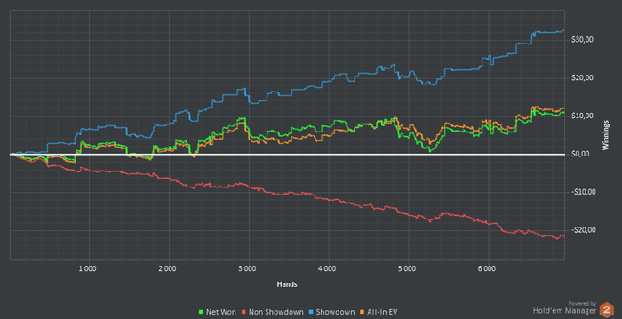 Хочу подняться до NL25 и там закрепиться. График с NL2. Недобор за 6k рук 14БИ. Я, честно говоря, в ахуе. Денег хватает играть NL5 с подключением Nl10, но почему то хочу, чтобы автомат мне всё-таки отдал! Возможно это состоится на лимитах выше. Тему создал для мотивации катать.