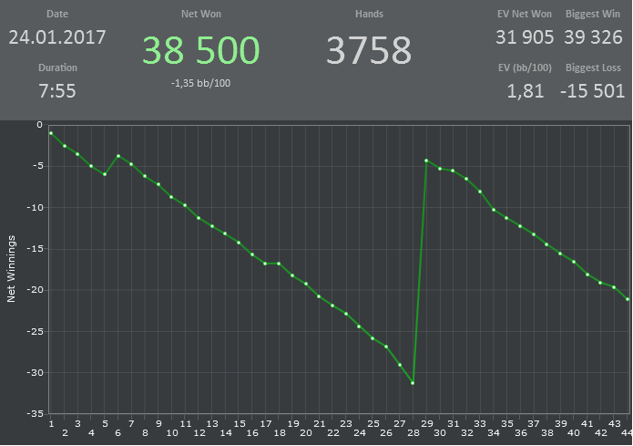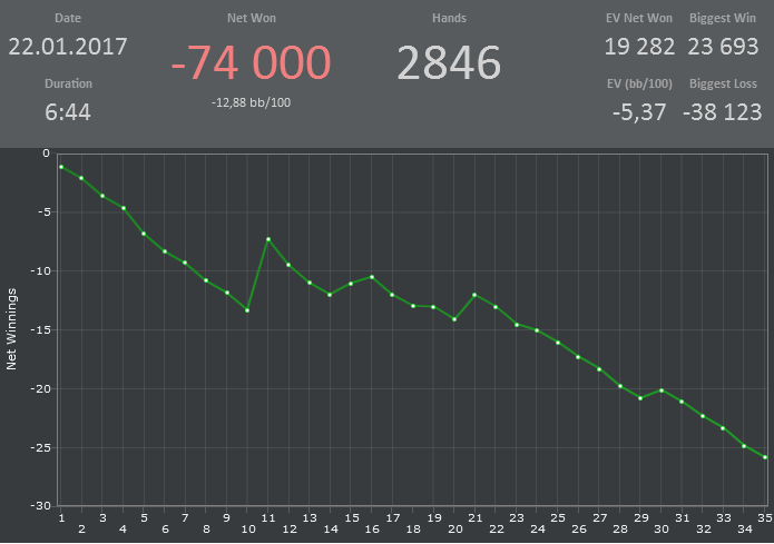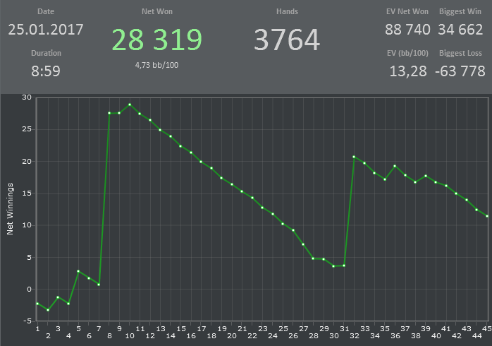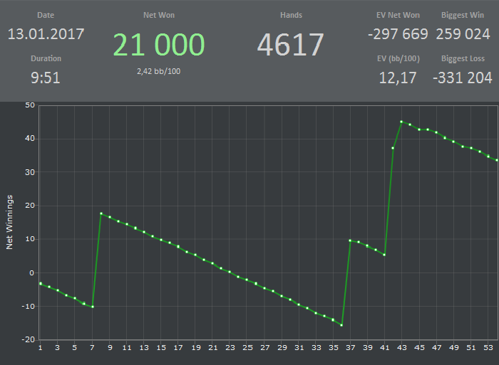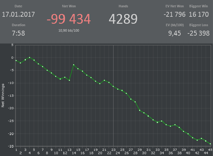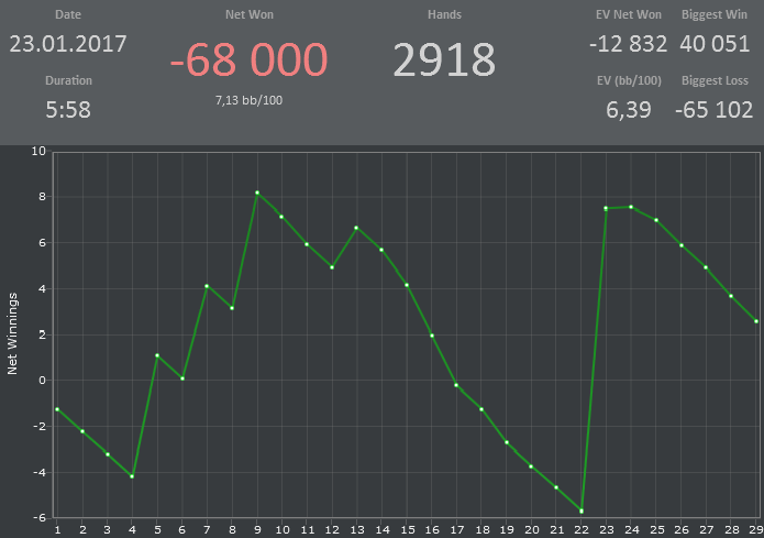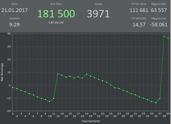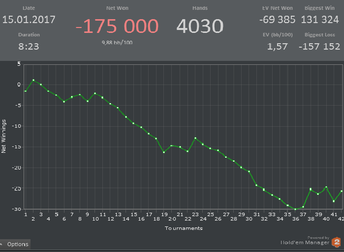 Довольно интересный день. Вошел в топ 50 в 3ёх мтт за 1$, но слил в основном по глупости. Где то сыграл слишком пассивно, где то переоценил силу руки... но ничего все еще впереди.