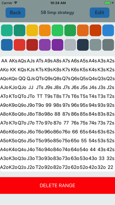 Range Helper - это приложение для создания и хранения ваших диапазонов. Вы можете быстро и легко создавать необходимые диапазоны, а затем при необходимости, моментально их использовать прямо во время игры, будь то игра в интернете или в одном из турниров Мировой Серии Покера.