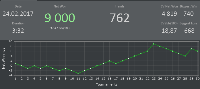 Добрый день всем,появилось свободное время,решил устроить очередной марафон,попытаюсь сыграть 1000 турниров Spin & Go 1 $ с банкроллом в 50 $, отчет постараюсь выкладывать каждый день.Поехали