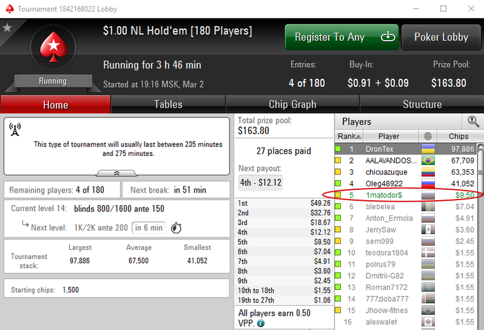 Цель - сыграть 1000 турниров MTSNG 90, 180-max и др. АБИ=$1-5