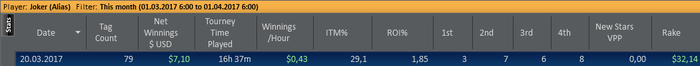 Ежемесячно я буду выставлять себе цели на текущий месяц и по итогу отчетного периода буду анализировать их достижение или причины, по которым я их не достиг. Долгосрочная же цель у меня одна - это выйти на стабильный ежемесячный заработок от покера в 1000$ в месяц.