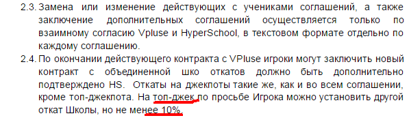 В соглашении прямо указано, что откат может быть изменен по просьбе игрока, но должен составлять не менее 10%