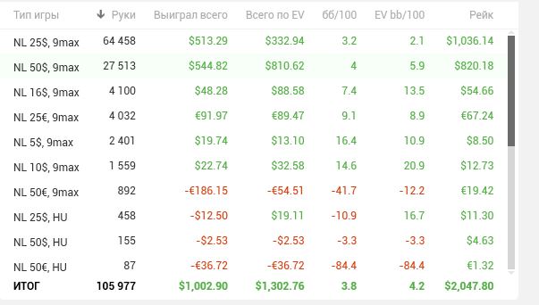Примерно к концу года я думаю выйду на среднюю свою покерную ЗП, за последний год реально стал лучше в плане нервов, потому что они подводит начинали, были побочки в виде периодических головных болей - они исчезли, снова вернулись сноведения каждый день, ну и в целом покинув покер чувствую себя прекрасно =) Всем успехов, если че, спрашивайте, можно в личку можно тут, как удобнее, раз в пару дней всегда на сайте =)