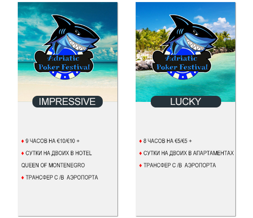18/06, 25/06 и 2/07. В 19.00 Small satellite фриролл, гарантирован один билет на Main satellite в 21.00 , B 19.30 Small satellite R/A по 2$, гарантирован один билет на Main satellite в 21.00. В 21.00 Main satellite R/A по 22 $ гарантирован пакет на МЕ Adriatic Poker Festival стоимостью 460 $