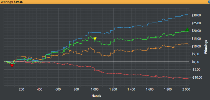 На данный момент это мои самые крупные успехи в МТТ. Нужен совет. Пуш-фолд у меня "прокачан" более-менее, но на постфлопе заметил что торможу. Какую прогу приобрести для постфлопа? Советуют флопзиллу. Скачивал триал, но она на английском, который у меня не на высоком уровне и чёт разобраться не совсем могу что и как.