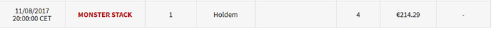 Это то что в кассе. Повысил БИ до 2 евро. Правда только к завтрашнему вечеру повысят. На сегодняшний день план таков: до серии в сентябре попробовать ещё банкролл увеличить. Хотя настраиваюсь на серию. Но пока не уверен что буду её играть, так как не по банкроллу получается. Вообщем такие вот размышления сейчас. На 2 лимите существенно больше турниров. На 1 лимите из крупных только один!