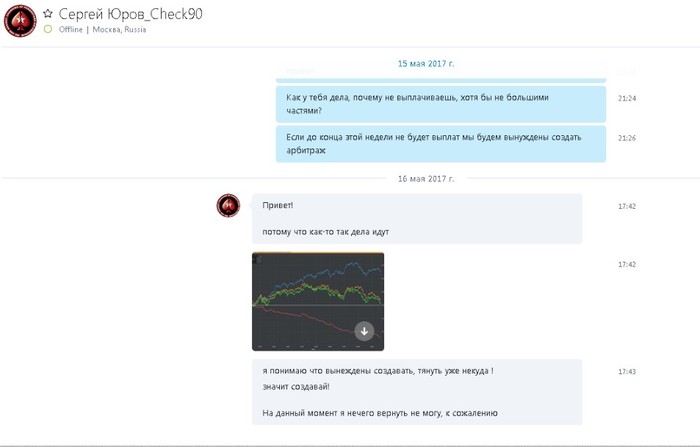 Акк мне по большому счету не нужен, но если арбитраж не снимут, то отдавать я ничего не буду. Гениально! А в целом это лютый пиздец конечно, залудить чужие деньги, долго ничто не делать, а потом, когда они у тебя появляются, говорить что отдам, если снимут арбитраж