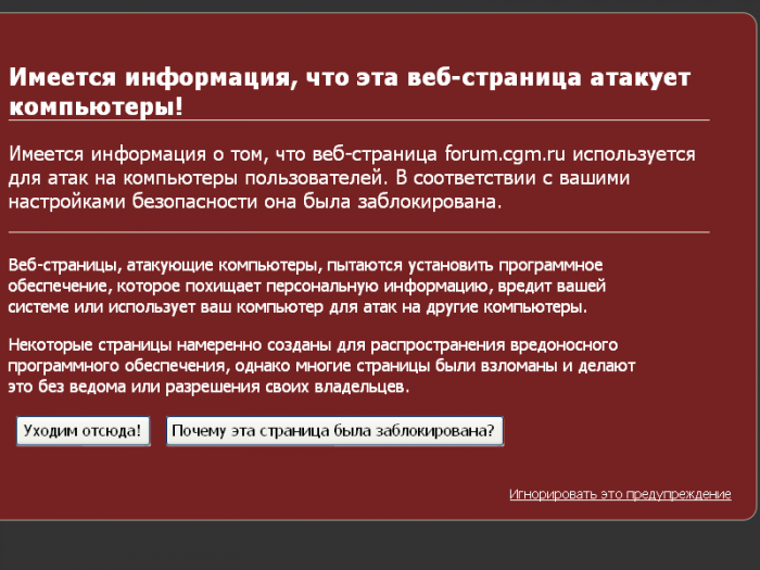 опасно тем, что если пользуешься гуглхромом или эксплорером, у тебя стоят не последние версии адоб ридера/вм плеера/ява машины и нету антивируса, то велика вероятность, что какой-нибудь эксплойт сработает и загрузит тебе на компьютер связку вирусов. в лучшем случае ты станешь звеном в ботнете, а в худшем могут увести деньги со счетов в румах и кошельков, на что скорее всего и надеются те, кто размещает вирусы на цгм.