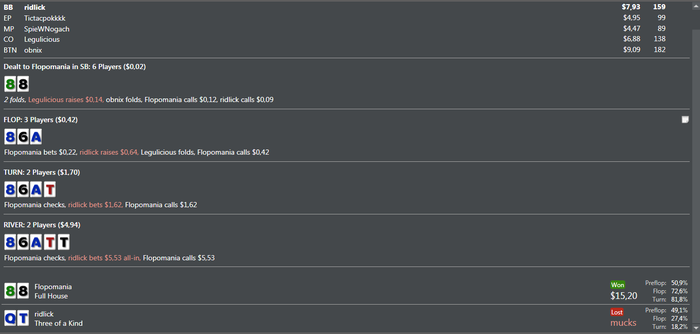 Выложу несколько раздач,когда вновь придет эта бредовая мысль -" Сидя дома зарабатывать 5000$ в месяц покером " посмотреть на этот цирк и стереть эту обреченную на провал затею из головы