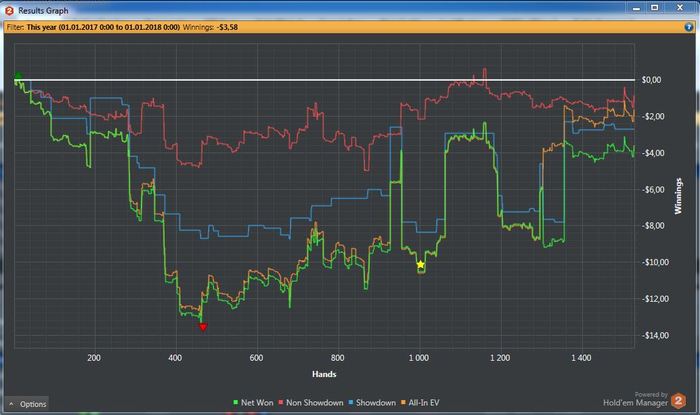 поднялся до +15, ну и зачем заканчивать на хорошей ноте, мы еще поиграем до нормы в 1.5к рук... доигрался бля..