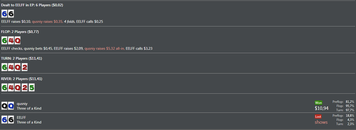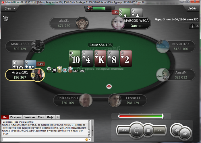 Всем привет,так уж получилось что от банкролла осталось всего лишь 86 коинов с которых благополучно удалось раскрутится до 11$,так вот моя задача раскрутиться до 500$,буду играть в основном кеш,подключать по настроению турниры,снг и спины,так же в планах сделать небольшой деп для того чтобы гсч был благосклонен ко мне