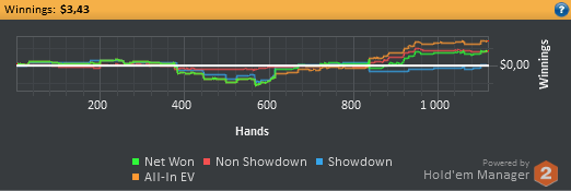 С момента создания блога я во многом преуспел, прошел обучение у Петра aka BoggartYork на курсе PokerPro, успел накатать приличную дистанцию на NL2, довольно скромные дистанции на NL5-10, и сейчас начинаю осваивать NL25. Катаю 6max рег столы, результаты такие: