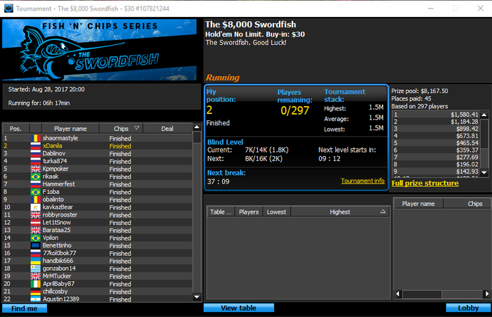 Также заметил, что без четкого плана, без ведения дневника начинаю лудоманить, и это выбивает меня из колеи. Баксов 500 залудил за неделю точно, последним была регистрация в турнир 109$ Mini Tuesday Thrill. 5 минут и 2 пары в сет и мы улетели.
