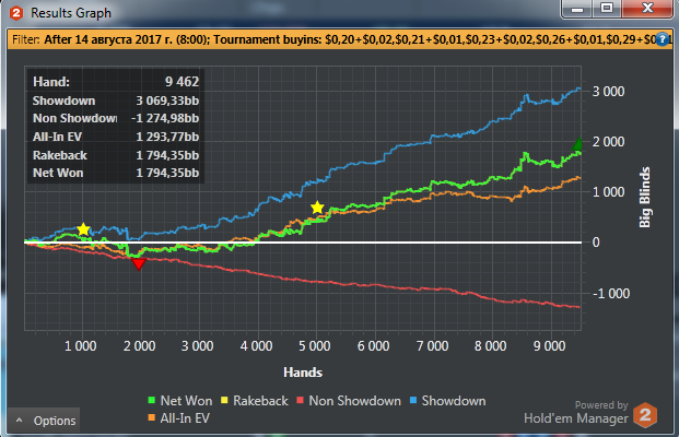 Откатал уеву тьму турниров. Ничего не выиграл. Решил поиграть кэш, сыграл в слабый плюс. Подробности писать не буду т.к. в диалог со мной никто не вступает. Просто смотрите на графики. Надеюсь что когда "затащу", толпа подтянется.