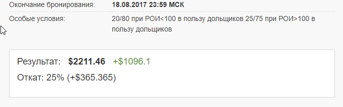 Из чего следует (по моей логике) что набаинка пакета равна=1493$, призовые=2954$ рой=98% и откат тс = 20%