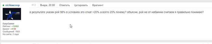 Хорошо что пакет на 7 дней а не на на две недели и больше и откаты прописаны всёго в двух видах, иначе могло бы получится интересно, чем больше Херо играет тем рос бы рой, могло бы получится что загруз был бы за 14 дней 3000 например итм на 30001, то есть профит 1 доллар но рой бы считали по данному пакету и рассчёту Grigory913 как 3001/750*100=400%))) и откат за профит доллар=25%