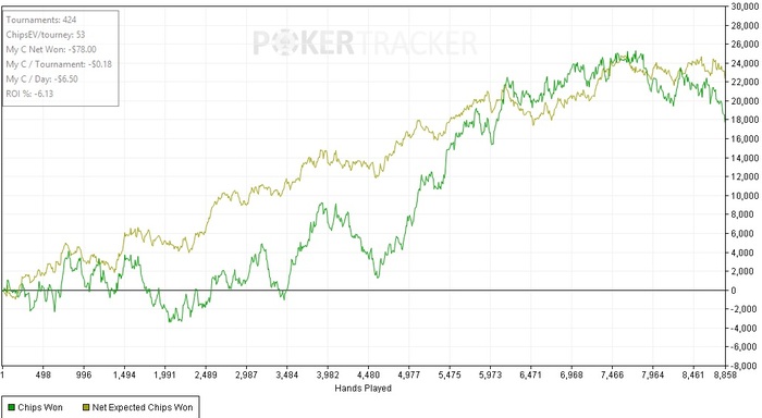 дисперсияотсутствие четких установок, целей и дисциплины - бывало, мог играть месяц, месить снгшки по 0,5-1$, 12-16 столов стопками, заработать (как сейчас помню свой единственный месяц в покере, за который я горд) с 5 баксов 250 (вдохновившись великим exlead), кешаутнуть 2/3, остальное загэмблить и бросить покер...... примерно на месяц. Бывало совсем про него забывал, по разным причинам, не открывал онлайн, изредка собирались с друзьями катнуть снгшку на дому и всё на этом.Но, как бы то ни было, покер все также не оставляет в покое и будоражит разум, заставляет возвращаться, как мне кажется, всех, кто в это играл больше чем 1 раз. Конкретно меня в этом году заинтересовали спины. Играл их (и скорее всего играет снова) один из товарищей, который не так давно за год-полтора прошел путь по всем лимитам (кроме 0,25) которые представлены на ПС. Я сам, человек игравший снг и мтт сначала презирал эту пиханину лотерейную и противился открыть даже "погэмблить", но что-то поменялось, и теперь играю именно на барабанах. Плюс зачем-то перечитал блоги Сторо, Феникса и Whitepavel (земляк), ну типа ума-разума наберусь, стану лучше понимать... и это помогло. Я стал лучше понимать, что вообще ничего не понимаю :) Но, опытным путем, карабкаясь то вниз, то вниз, то опять вниз, а потом вверх, понемногу начал понимать,
