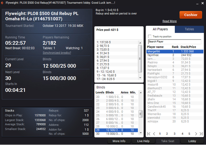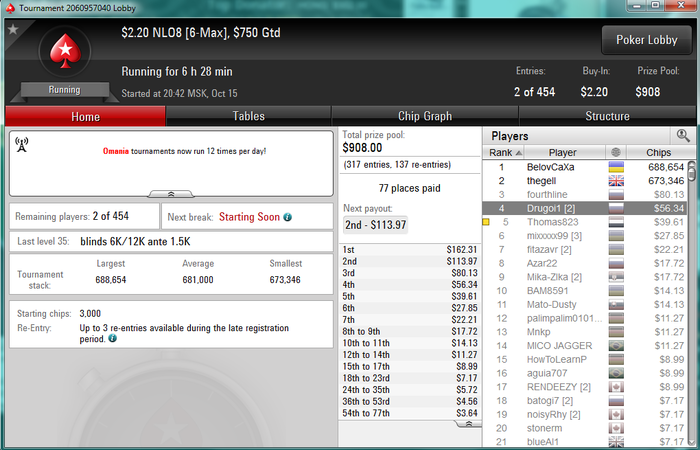 Что сказать, с банкроллом в $77 пошел гриндить $0.25ки, отыграл пачкой за вечер сто туров в ноль. Тоска, уныние, безысходность (с).