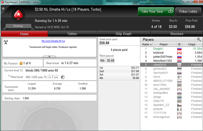 Играть, наверное, придётся SNG до $1,5 18-45 max.