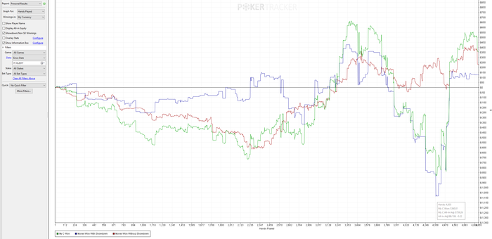На мой взгляд, в подавляющем большинстве случаев, людьми движут шкурные интересы. Из этих интересов основные – еда, ебля и тщеславие. Так вот, поскольку я не ем и не ебусь меня мало вдохновляют первые 2 интереса (кроме алкоголя естественно), то я уповаю, что именно тщеславие вытащит меня из ямы, в которой порой меня так тянет обосноваться. Поясню. Если мне не изменяет память, то я играю в покер с 2008 года (Господи, почти 10 лет!); кажется, с 1-го курса моего обучения в универе. За годы обучения я хорошо выстрелил, играл до нл600, баловался омашкой на досуге - хе-хе - но не сказать, чтобы уже тогда я много играл. Тем не менее - то, что я заработал в это время, обеспечило меня таким комфортом, что голову я стал включать еще реже чем обычно. Я окончил универ и - как будто этого мне было мало - пошел работать по распределению… Да всем насрать, Господи!..