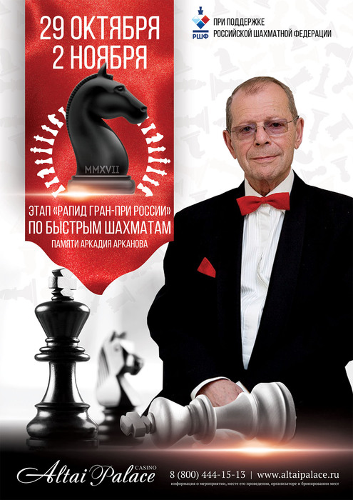 В игорной зоне "Сибирская монета", в казино "Altai Palace", с 28 октября по 2 ноября пройдет сразу два мероприятия, посвященные памяти Аркадия Арканова, большого любителя шахмат и покера!