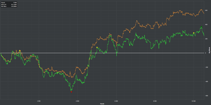 Почти за месяц сыграно не так много и не так удачно , как хотелось бы. Если так пойдет дальше, то даже половина от намеченного профита порадует меня. Очень много недоездов. До нового года постараюсь достигнуть отметки 2 500 игр, работая над игрой. EVbb/100 желает лучшего.