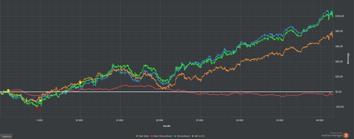 Настало время чего то глобального. Буду разбирать возникающие у меня вопросы. Из плюсов я это сделаю)))может кому то будут полезны тоже Анализируя свою игру столкнулся с проблемой cbetов. Я их ставил либо очень мало, либо очень много. Сейчас же кое какое понимание появилось. Что я могу сказать cbetы лучше ставить больше чем не ставить вообще. Примерно после 10к рук я понял, что много получаю автоприбыли. За счет этого собирается большая гора бабла на дистанции. Ну конечно я увидел в действии как работает Fold EV. Главное что я понял cbet начинается с префлопа, объясню о чем это я. Ключевой фактор это сайзинг. Если изначально много ставишь на префлопе 3bb и больше, то cbet автоматом ставится больше т.к. банк разгоняется ну это логично. Какой вывод, надо разобраться с подбором сайзинга. Вариант самый простой на вэлью лупим 3bb, а с пограничными руками 2bb работает только на фишах)))Реги это быстро замечают и подстраивают свои 3betы куда надо)))Как я делал ну и делаю. В регов стилю всегда по минимуму 2bb редко 2.5bb, зачем я это делаю?? Ну во-первых я маскирую монстров т.е. если меня кто нить вскроет и увидит хорошую руку к моим стилам сразу поднимается доверие. Во-вторых я дешево блефую т.к. мой спетор стал намного больше и плюс позиция разыгрвать что то регам на порядок труднее. В третьих меня реже требетят это очень радует с плохими руками))) Из минусов что могу сказать: будут шире защищаться на bb чаще всего коллом конечно, но тут проблема не велика позиция делает свое дело и выигрывается по прежнему много. Чаще будет заходить sb ну если он лузовый, то докинуть 1.5bb ему по корману, тем самым часто в 2х ооп не будешь ставить cb но есть если на флопе мостр то больше вариков, что кто то зацепился и собираешь с него по царски))) Вообщем ставим cbetы поднимаем винрейт с колен