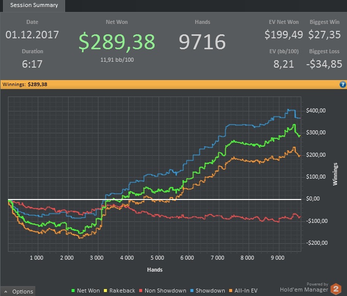 Всем привет, решил мотивировать себя и создать тему. Год катал нл50 в 2бб\100, последние три месяца разленился, мало играл, так еще и словил жесткий даун. В итоге осень получилась около нуля. Для поднятия морали решил плотно катать весь месяц. Планирую играть 20-24 стола. Буду скидывать сюда отчеты после каждой сессии.