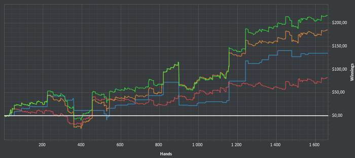 Hero (CO): $53.06 (106.1 bb)BTN: $79.30 (158.6 bb)