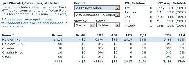 Ну и давайте подведем сейчас маленькие итоги, того что есть: 1) Играю турниры фризауты по 10$-20$ (редко 30$), иногда ребайники по 3$-5$(они так же выходят, как и ребайники по 10$-20$) 2) Никаким софтом не пользуюсь 3) Статистика за 2 последних месяца (см. ниже) 4) Ник на PokerStars: LyraPKazak