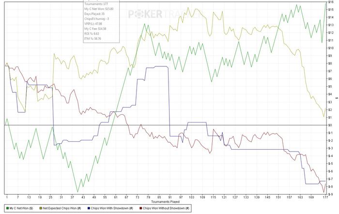 Примерно 60 турниров в полном адеквате , щяс вернулся от гостей вроде пытаюсь (итого 69 сыграл ,щяс ещё буду долбить ) играть по А игре , посмотри завтра что из этого выйдет, могу сразу сказать у пьяного всегда получалось играть лучше так как яиц вроде двух положенных появлется три )))