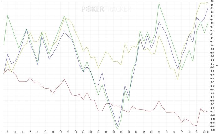 Сразу выкладываю 3 графика на трёх румах, после установки ПТ4 и нового гринда, так как с покером знаком давно лет 7