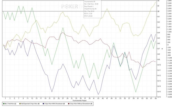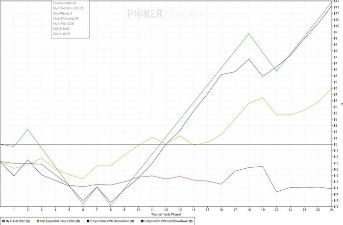 10.01 Откатал 54 турнира , Рои 0,24% , +20 центов профит , всего пару раз запушил гатшотдро, но никто мне не верит, когда на столе лежит 3 скоординированных карты колят по ТП , вот так блефовать тоже вредно бывает График в пт4 почему то больше показывает незнаю почему