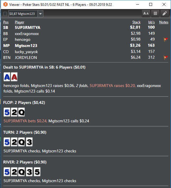 MityaNl2, флоп гуд. Терн лучше не чекать, так опп в позе может нас начать выдавливать.