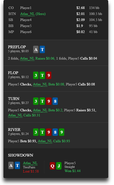 на терне ты достаточно плотно поставил, а тебя еще и перекручивают, очень сомневаюсь, что он это сделал с дровами, проще сфолдить и забыть про эту раздачу. В 99% случаев ты позади, на нл 2 не нужно мудрить, почти все играют прямолинейно. ( конечно если по статам он не агроманьяк)