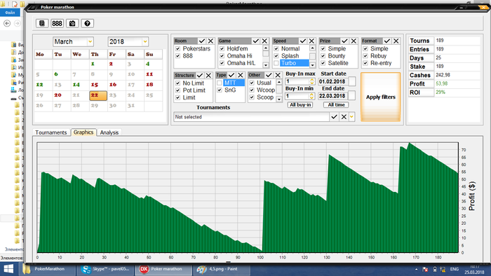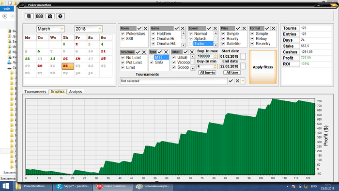 По количеству турниров - 500 шт. Играемые турниры 1$-180чел; 1,5-90чел; 4,5-180чел, все не турбо, соотношение по количеству