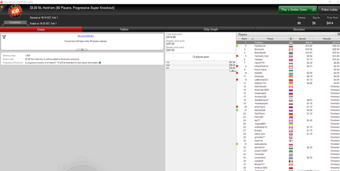 Отчик за прошедшую неделю. На домене ком играл мало, осваивал испанцев. Даже при БР 500 умудрился играть не по БР, лудоманил до 30 баксов гиперы. Сыграл примерно в 0. Вчера выиграл 5-й нокаут