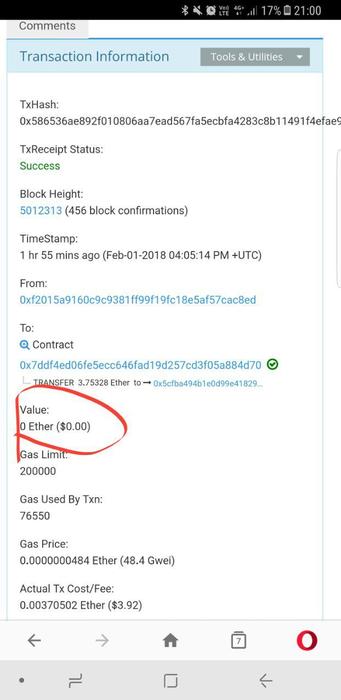 witaj @ 3.3.2018 Помогите решить проблему, сделан был перевод TxHash 0xd683fcfba60d23cfd4355d3ace277252ea7091b5566321b03d6ca7749b180476 Отображаються транзакция в internal transactions , на баланс ничего не пришло, что делать ?