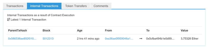 Но он попал не в Transaction, а в Internal Transactions.