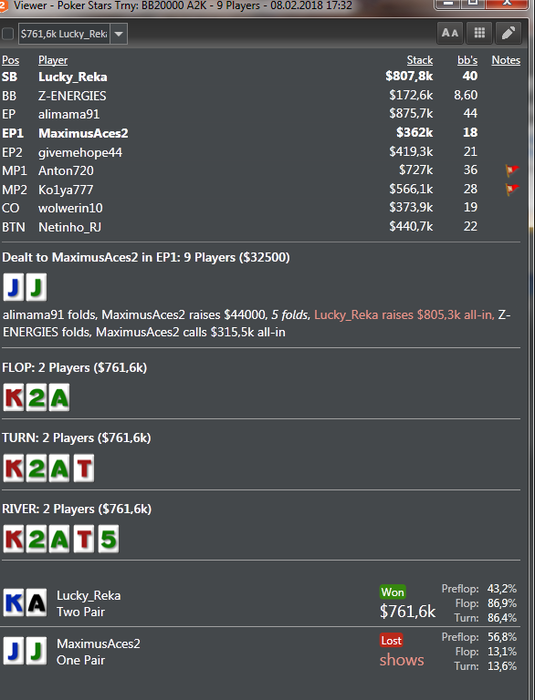 Если никакой предистории вообще нет, то это на финалке диапазоны конечно меняет. Я думаю даже в этой ситуации кол в небольшой +ев получится, учитывая что он впихнет здесь руки типа 9-9+ и AJs+ , он чипак и рискует меньше чем половиной своего стека.