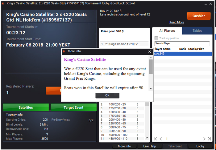 Не хочу вести нал, есть ли онлайн оплата? Карточки? Вы можете внести баин с помощью Visa или Mastercard с комиссией 2%, или снять наличные через фишки казино без комиссии и оплатить вход в турниры с помощью них. Так же возможно сделать банковский перевод на свой депозит в King`s Casino