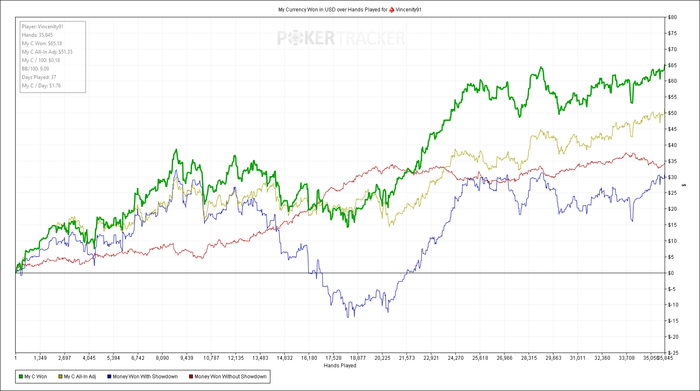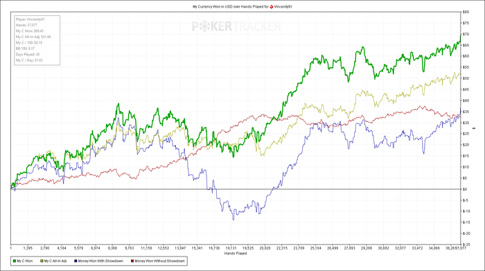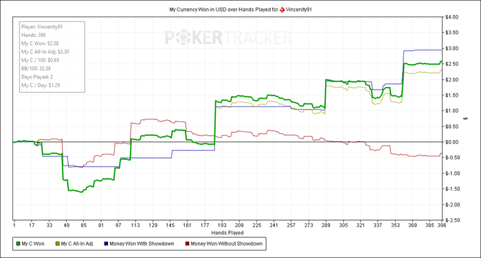 Файналли, я думаю, что побью НЛ2 (нужно набить около 120 $) с винрейтом около 10 бб/100. Вот что дальше делать, не знаю. Играть НЛ5 или продолжать НЛ2...