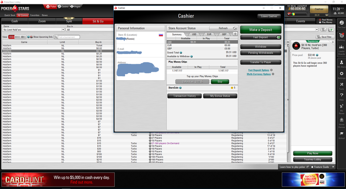 Всем привет. Сегодня в кассу ps упало USD 5,41 с The Deal . и нужно раскручиваться. Для дисциплины и контроля сделаю марафон, ибо могу залудить. Играть буду все турики на какие хватит бр-а. О результатах буду писать каждый день.