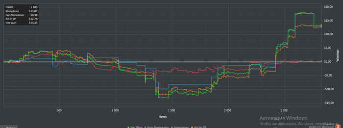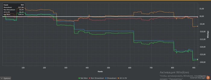 Также выработал в себе систему ограничения, если я понимаю, что, откровенно творю черт пойми что, я тут же закрываю столы на пол часа-час, пока не остыну. Как оказалось, такие действия +EV.