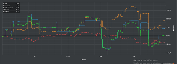 Если быть честным самим с собой, все, что ты видишь на графике, это следствие моей никчемной работы над игрой и отсутствие фокуса на игре. Ничего не меняется, как играл на нл2 в ожидании удачи, так и играю на нл5. Чувства, выхода на новый уровень совсем нет, состояние стагнации.