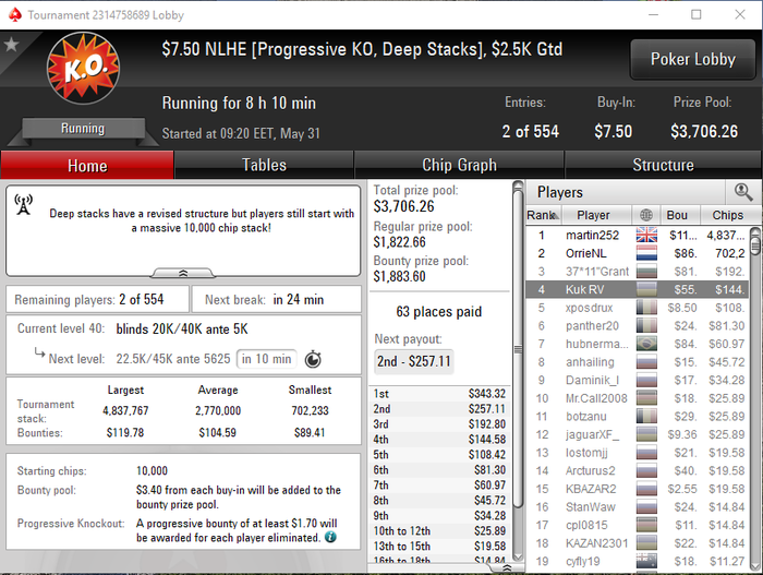 Правда небольшую, 13 туров только, решил не продолжать лить, тк был неплохой шанс того что из-за сногшибательного рана могу дальше хуже играть...