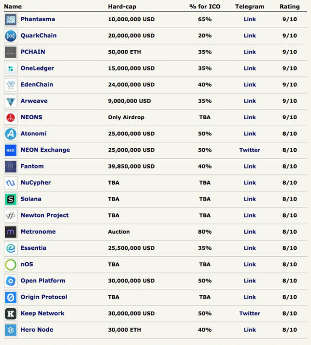 https://icodrops.com/phantasma-protocol/)Возьму в долю за 50% токенов. Скорее всего будут проводить пару раундов, минимально требуеться зайти на макс капу для 1ого раунда. Кошельки (нео) мои. Токены раздадут сразу после ИСО (написано что сразу после оплаты но посмотрим если не поменяют). Детали сейла и индивидуальные капы еще неизвесны. От них зависит сколько акков я буду продавать, что-то в районе 2-5 акков. Вашу долю токенов закину на ваш кошелек сразу как только мне их выдадут. Исо 22 мая.