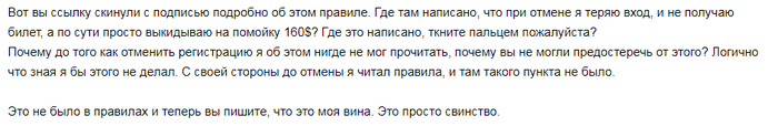Думал что там много народу будет, но открыв лобби обнаружил что это не так. Поэтому было принято решение внести депозит и сыграть в турнире. Занял топ 5 место. Это было в субботу, Main 160$ в воскресение. В лобби турнира было написано, что билеты будут предоставляться на следующий день. В вскр билета не было, но я нажал на мои турниры и увидел что зарегистрирован в мэйне по 160. Обычно игроки не могут отменить регистрацию, не даёт система, а если и даёт то на счёте появляется билет. Но я решил нажать на отмену, т.к желание играть со старта в такой глубине не было.В итоге отмена регистрации прошла, но билета на счёте не было. Я им написал в СБ до турнира, и первый ответ получил тоже до турнира, это важно. На что последовала долгая переписка смысл которой что у них такой прописки в правилах нет ( пропоска того что если игрок отменяет регистрацию, то он добровольно лишается место в турнире или билета), но несмотря на то что её нет я сам виноват и добровольно отказался от участия в турнире.