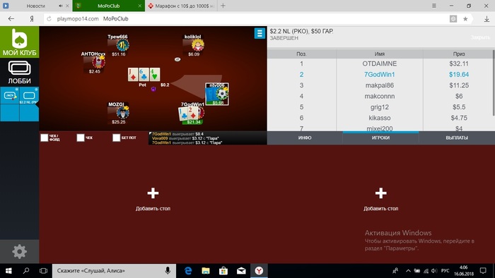 Говорят, что наш мозг любит четкие поставленные цели. Решил вести марафон для своего мозга, чтобы он был более сконцентрирован на игре. Марафон начинающего игрока с 10$ до 1000$ с кэшаутами на текущие расходы. Буду играть в небольшом руме с большим количеством начинающих игроков. Главная задача набить банкролл на Старзы для игры в мтснг 2,50$ 180 max.